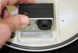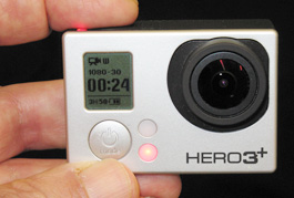 Step 1: Push front panel button to turn on GoPro Hero 2 or Hero3 camera
