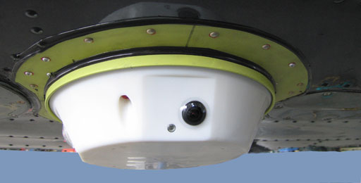 Here is the Hero2 version of the Eagle360 (the Hero3/3+/4 version has a rectangular external lens), attached to a mounting plate on the belly of my Twin Commander 980 (prior to painting). The Eagle360 is